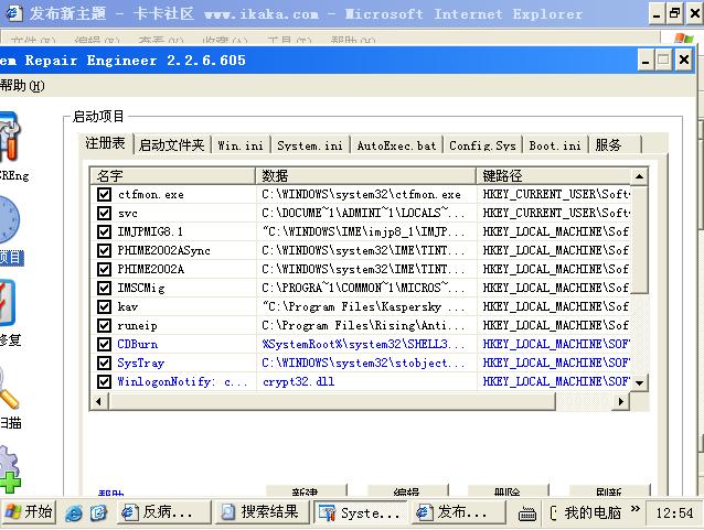 按照大家给的方法,清理了下~~~再看SREng,启动项里一看,多了好多东西:如图