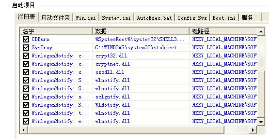 所有的启动项目(包括注册表、启动文件夹、服务等)