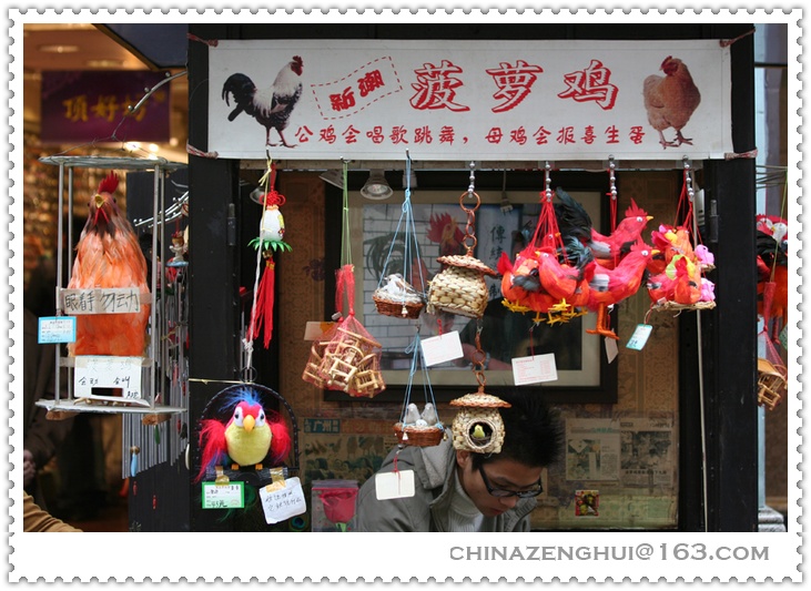 【羊城布衣的贴子】据老广州说:菠萝鸡发源于广州南海菠萝庙,属于手工艺品。用鸡毛粘在鸡的模型上,形象逼真、生动。