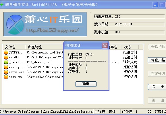 以后如果有谁中威金无法用专杀查杀..