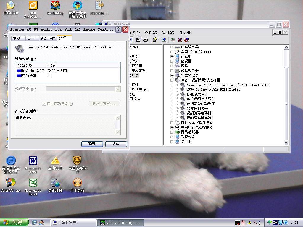 可以将USB占用05向量改到其它的号去那么就手动给声卡的05中断向量不改11号,因11占的太多太麻烦只修改声卡为05,将USB占用05的改别的空号去,所以可以判断是中断向量冲突因起的原因了,只要改了向量应该就好了。