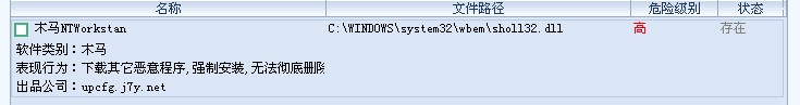 用卡卡扫描结果:c\windows\system32\wben\sholl32.dll(木马)