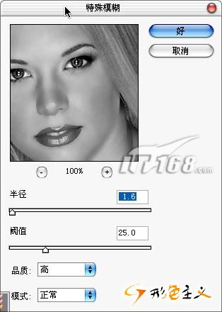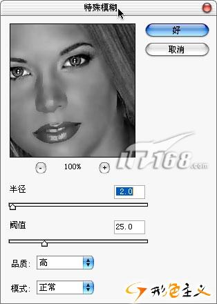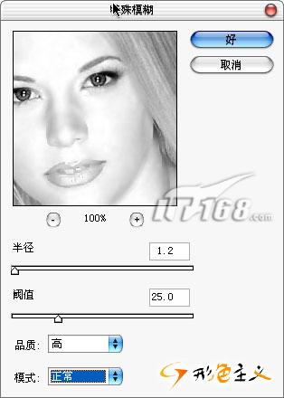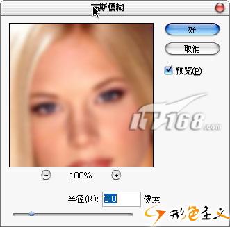 设置模糊半径参数为3.0,这要根据不同的照片选择不同的参数,目的是让照片模糊到没有瑕疵为好。模糊半径越小,最后的皮肤看起来越有光泽,所以我们尽量让模糊半径参数最小化。
