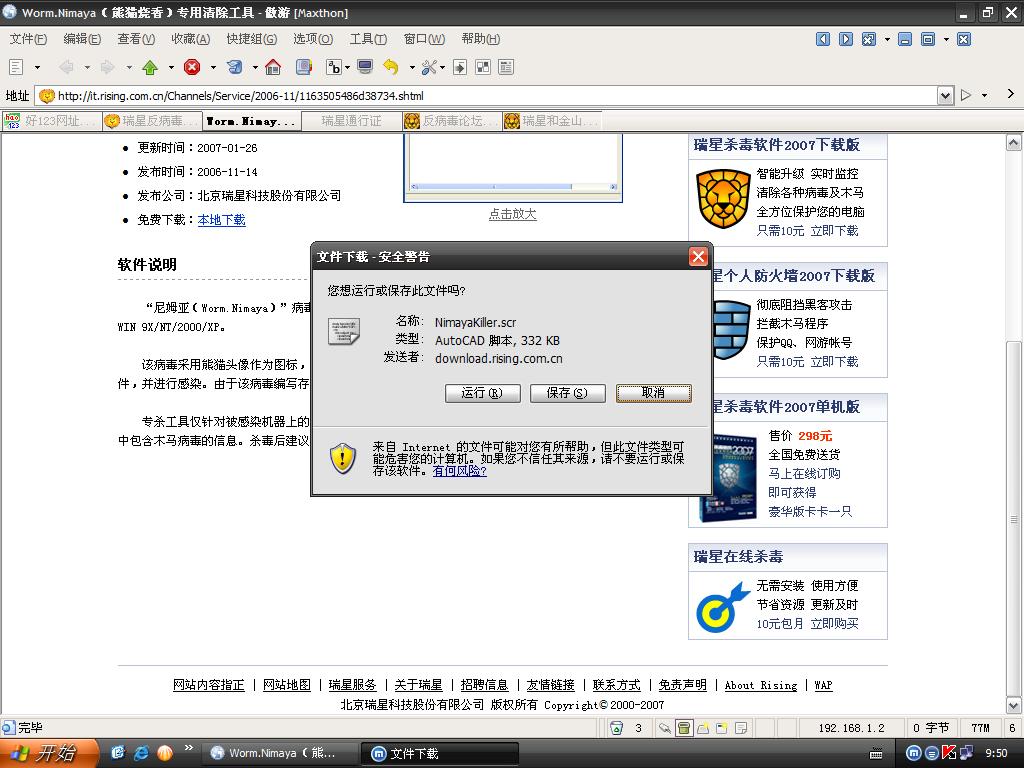 【光之仙剑的贴子】我的是瑞星官方下的......