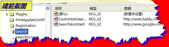 【建能的贴子】你进入注册表HKEY_LOCAL_MACHINE\SOFTWARE\Microsoft\Internet Explorer\Search