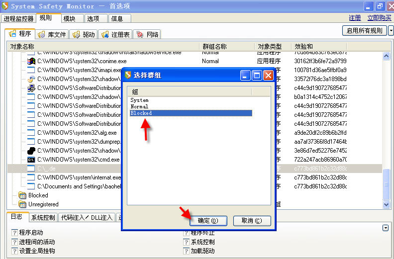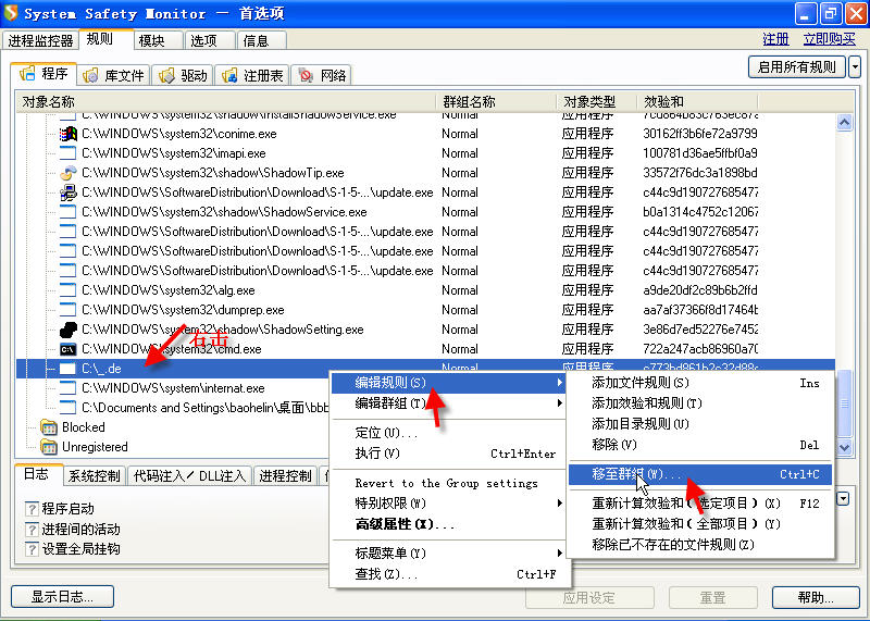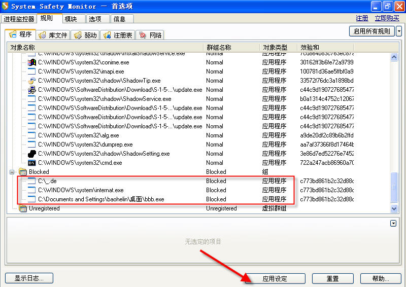 至于被感染的.exe文件,也可以运行。只是运行时在系统盘根目录下释放一个_de文件。如果用SSM禁掉这个_de,你尽可放心运行那些被感染的.exe。没有再次感染系统的危险。