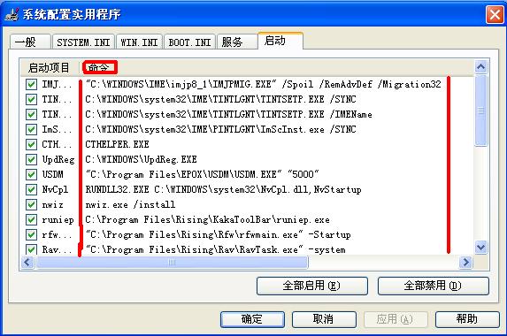 系统配置实用程序的“启动”选项卡中,如果列表中在“命令行”选项卡中包含otag_i.dll字段的启动项,禁用。