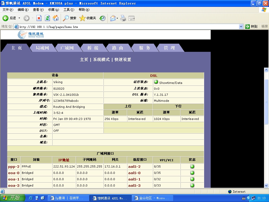 我是铁通的普通个人用户,铁通不会给我开通VPN通道的;我自己设ADSL猫时只将桥接菜单里的项目删掉,然后填上账号密码即可.所以这个122.7.52.*山东IP出现的实在蹊跷.