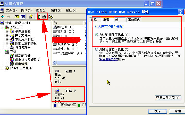 鼠标指到“我的电脑”上右击选择“管理”,在弹出的“计算机管理”窗口中点击“存储”下的“磁盘管理”。在右边窗口中就会出现本机硬盘的所有分区,及可移动磁盘参见下图红框中所示
