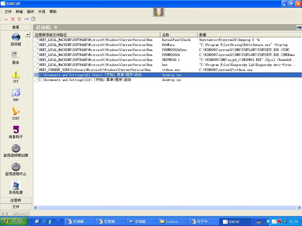 所有的启动项目(包括注册表、启动文件夹、服务等)