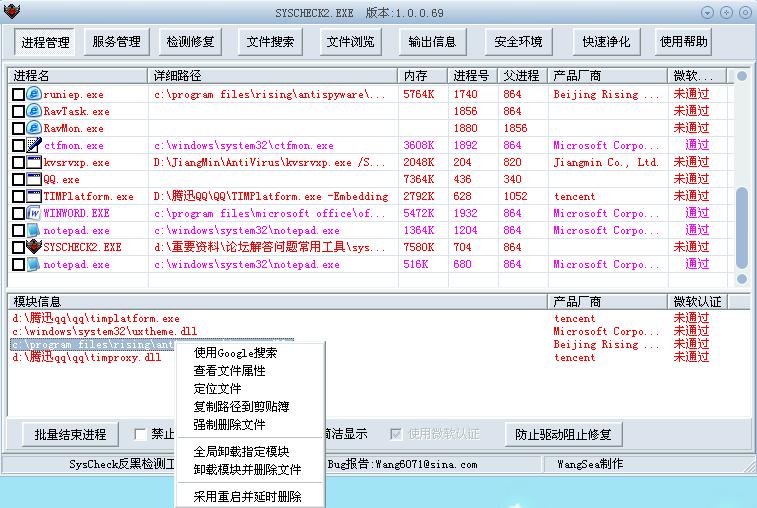 【原创】一款反病毒利器SysCheck的使用介绍