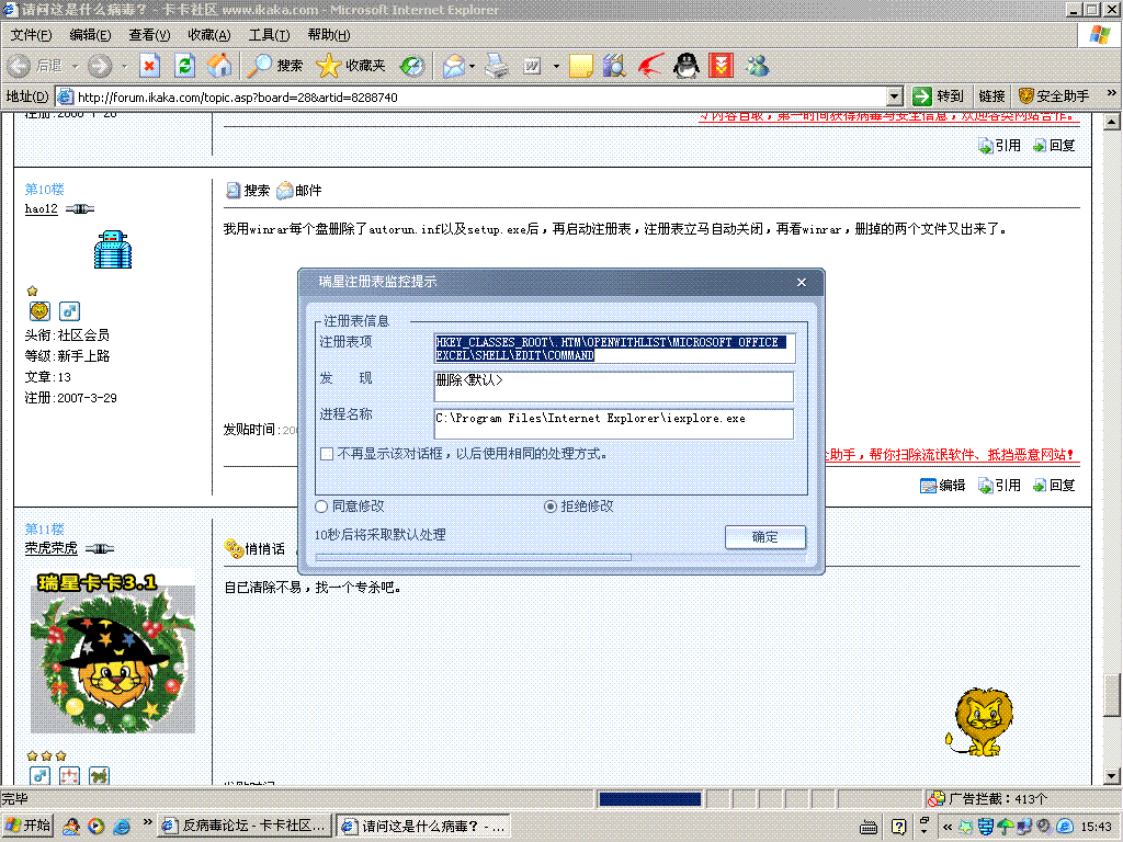 当时在影子模式,SSM监控时它试图连接网络下载其他病毒(我点了允许)