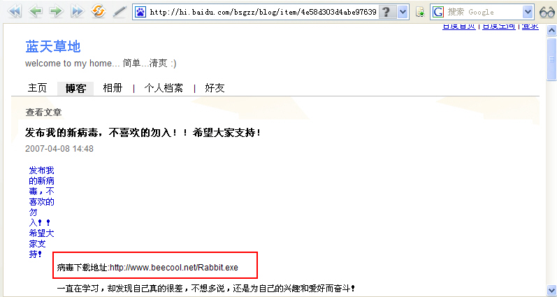 【原创】行为恶劣的蠕虫病毒(兔宝宝)的分析