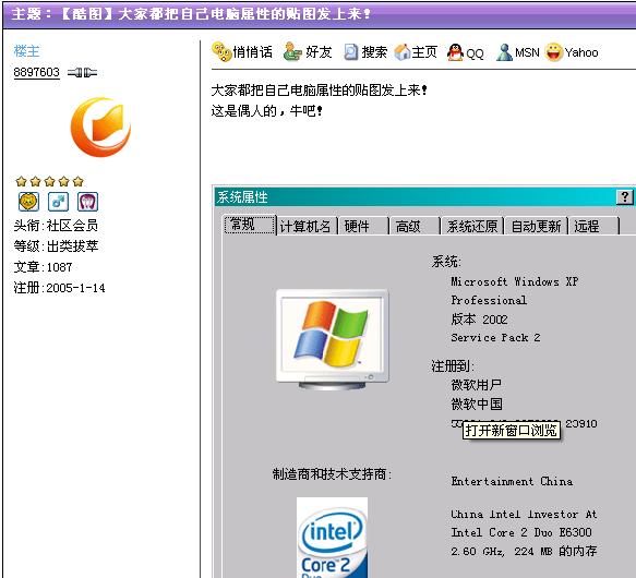 【酷图】大家都把自己电脑属性的贴图发上来!