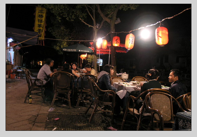 想拍同里夜色的,没拍象。这个时间的同里看到的大都是酒。当然酒也不是什么大酒,小酒而已。白天的同里不知好不好?但白天进同里要80元的门票,下午5点以后,早上8点以前看门的下班了,才不要票。进一个镇子、一条街要买票,可能不算是苏州人的创举。古时绿林客干的也是这个营生,但大都是在夜里或人少之时,苏州人还真是有才。什么时候要能把门放到火车站,进门就买票,就一定是个旅游大市了。