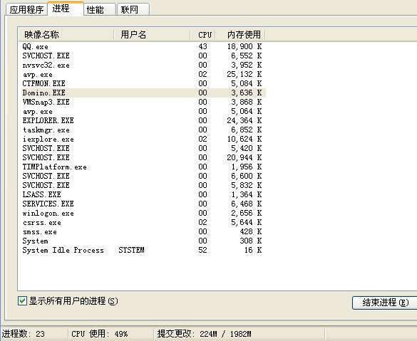 刚开机进程20。开了这个网页。开了QQ,进程23。