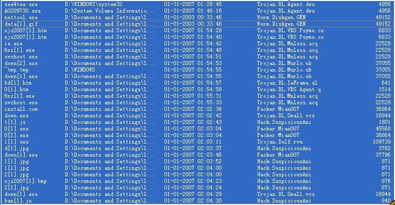 昨天晚上WOW排队无聊 就想查下以前读的中学里的人的照片 看在网上有没有 想不到查到了个认识的人的照片 刚点进去 RS就提示有病毒 立马出现了10个以上的窗口 都是提示有病毒 我只好按资源管理器结束任务 赶紧用RS杀毒 到是被我杀出了十多个病毒 安然我又进安全模式杀 很奇怪并没发现有病毒 完了 我再进系统杀 也没查出来 今天我升级了RS的最新版本 再杀 还没杀出 请问这是不是表明 先前中的病毒已经杀干净了 百度图片里怎么有病毒 啊 我后悔 死了 下次再也不乱点 了!!