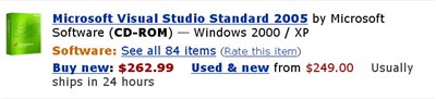 开发类的软件对于一般的人真的是用不到,但是对于程序员来说确实他们的饭碗,但是其昂贵的价格却让这些挣钱都不容易的程序GG望洋兴叹。现在最新版的Microsoft Visual Studio Standard 2005虽然在价格上已经比2003专业版下降了许多,但是对于国内的个人用户来说要想接受还是要一段时间的。