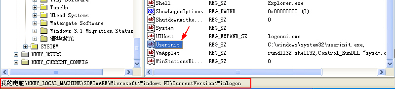 猫叔啊,你怎么加载你的冰刃启动项的啊,在注册表HKLM\SOFTWARE\MICROSOFT\WINDOWS NT\CURRENTVERSION\WINLOGON      这里找不到USERINIT这个项
