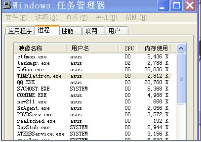 你将你那任务管理器的进程的图抓个来瞧瞧。