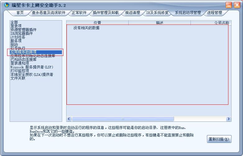 你杀完了病毒了吧,应用程序被劫持了,你下载个卡卡助手,安装完毕后,到安装的路径下面(卡卡默认路径是C:\Program Files\Rising\AntiSpyware)把Ras.exe随便改个名字,但不要改.exe这个后缀。双击你改过名字的卡卡,到图下地方把劫持的应用程序的钩去掉。