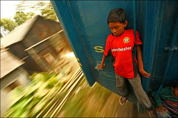 住在火车站的孩子能经常以这样的方式往返于城镇之间,同时,还能免费寻求刺激。