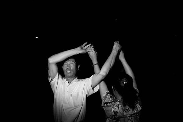 2006年9月26日,北京残疾人活动中心,两位盲人在跳舞的过程中伸出手臂寻找对方。