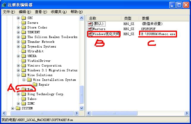 用图讲解一下注册表的一些名词: