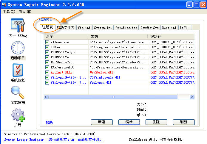 打开SREng-在"启动项目->注册表->删除以下启动项目