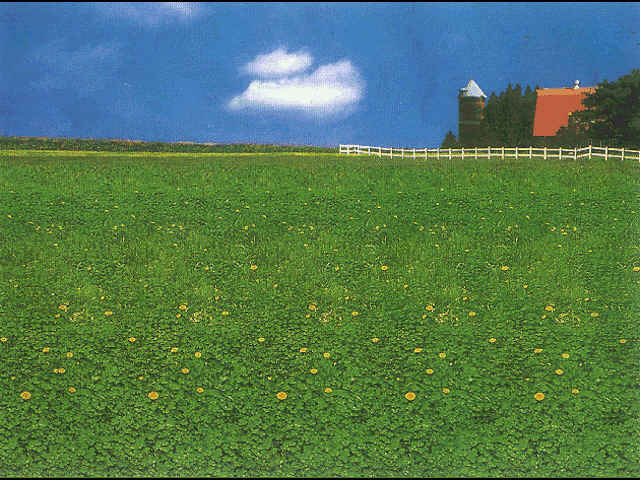请把下图上方的两点作为目标,先使眼睛休息片刻,然后象眺望远方那样,用稍模糊的视线瞄准两点,就会看从两点各自分离出另外两个点,然后调整视线,试图将里面两个点合成一点,当四点变为三点时,你便会看到立体图象。