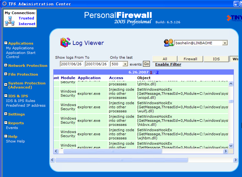 病毒模块插入进程的部分记录: