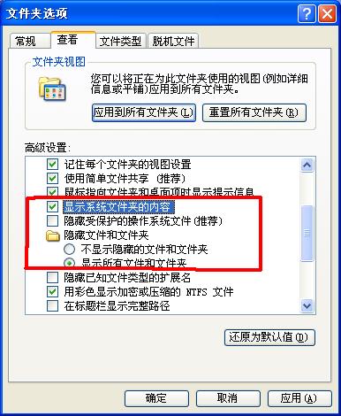 双击我的电脑-工具-文件夹选项-查看-显示所有文件和文件夹,把“隐藏受保护的系统文件”的勾去掉。
