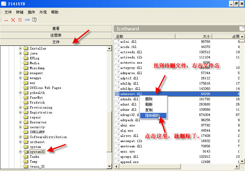 3、删除下列病毒文件: