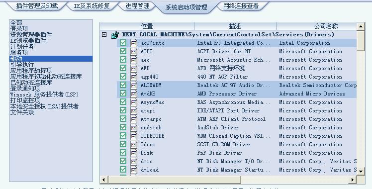一般值得关注的是灰蓝显示的,因为是驱动,所以很多灰蓝的项目大多是显卡或主板光驱等驱动,假如具有一定的硬件知识,那就比较好区分了。