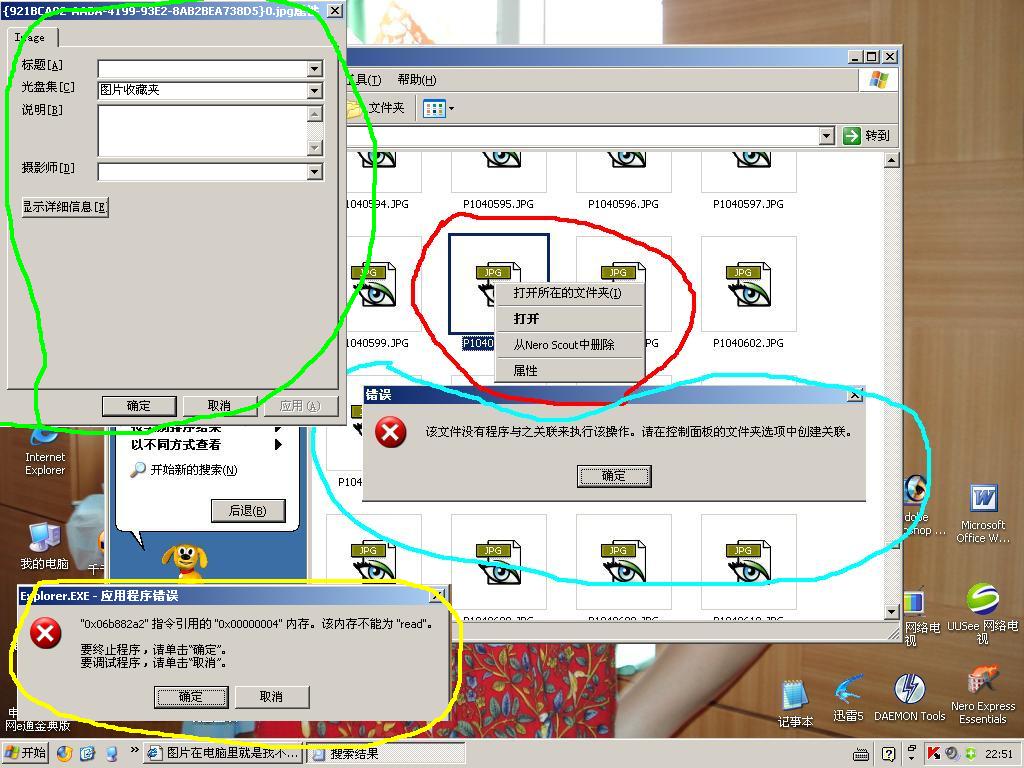 那如果是文件关联丢失那为什么其他的图片都可以打开,偏偏就是那个文件夹的文件打不开?那个文件夹在D盘,但是D盘又找不到,已经显示隐藏了,但是搜索又可以搜索到?虽然搜索到但是又打不开?没有办法了!