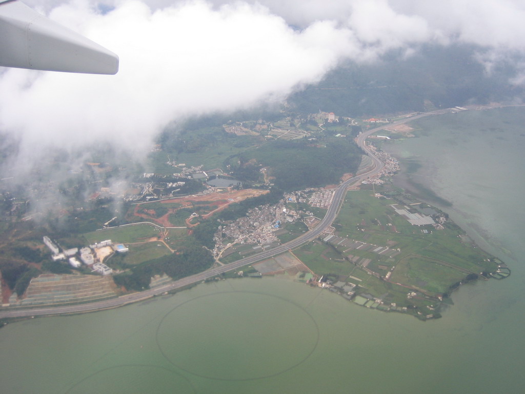 飞机刚起飞,地上那些神秘的圆圈还能看清楚。