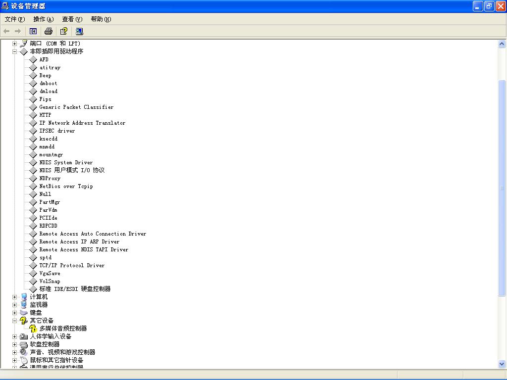 多媒体音频控制器就是声卡没装,电脑应该是没有声音状态……