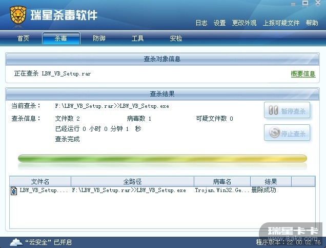 万事达回复:请升级瑞星至最新版本病毒库:21.22.34 不报毒。