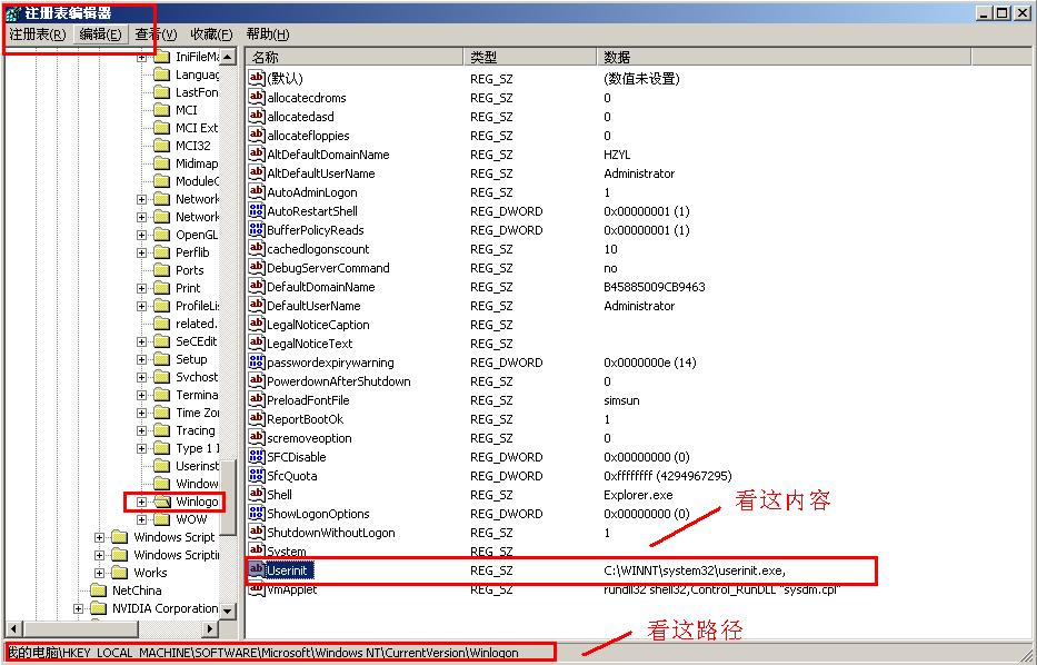 [HKEY_LOCAL_MACHINE\Software\Microsoft\Windows NT\CurrentVersion\Winlogon]指的是键路径吗。。。