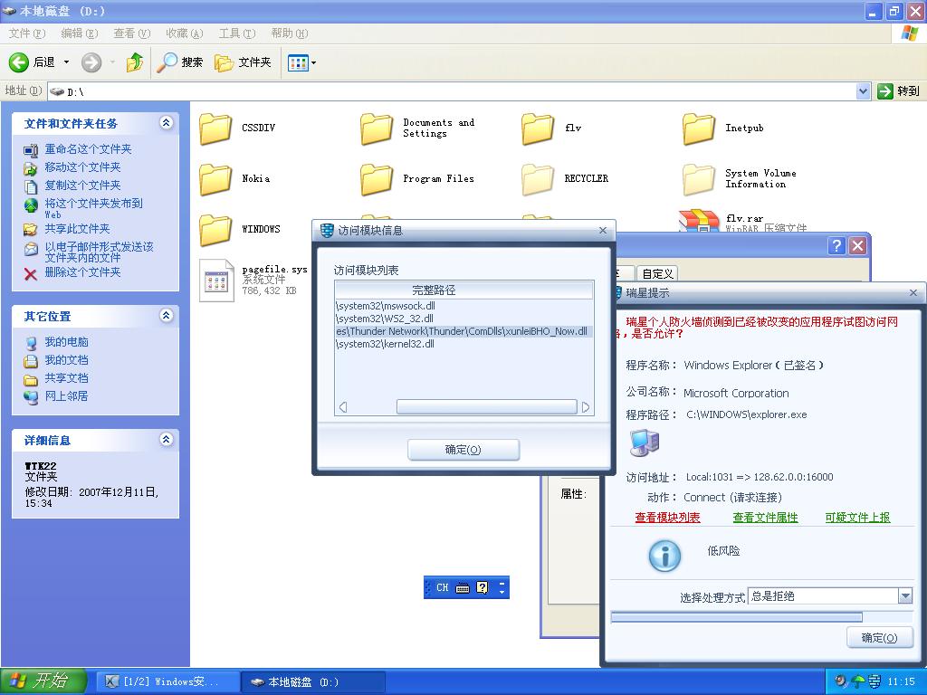 疑迅雷注入EXPLORER访问网络!