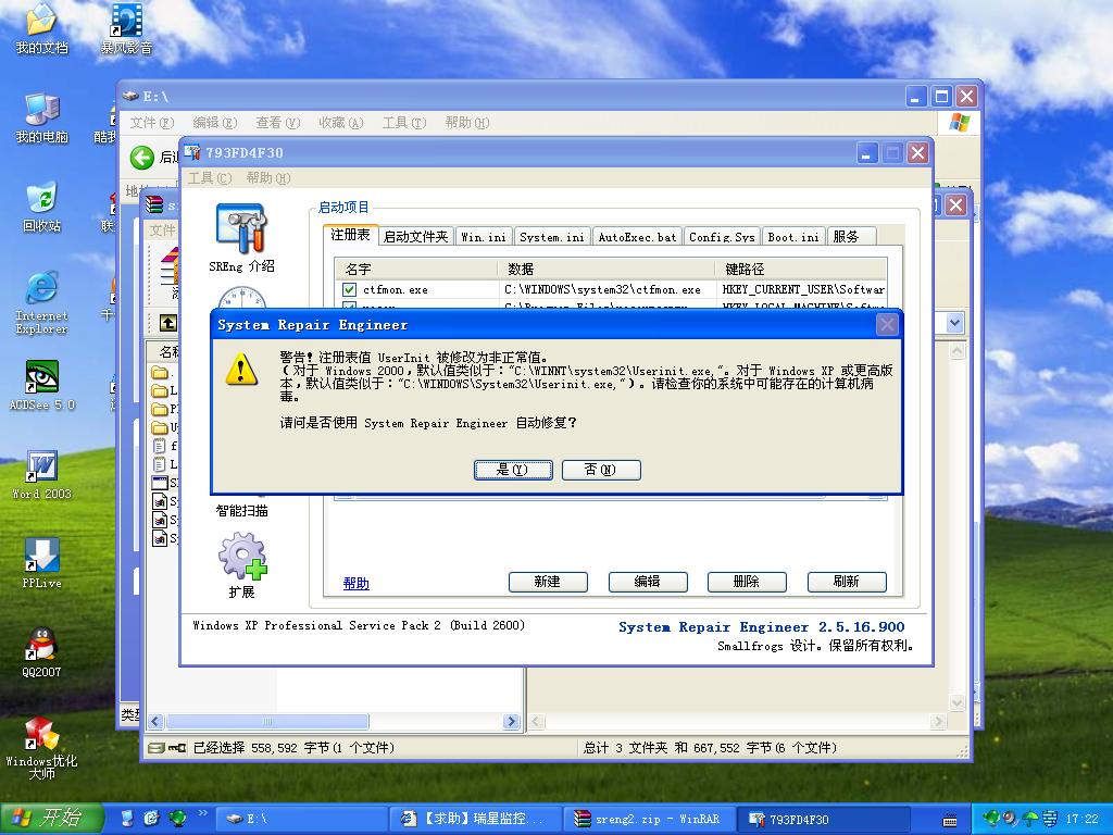 在扫日志的SRENG工具》启动项目》注册表》里面找下面项目删除: