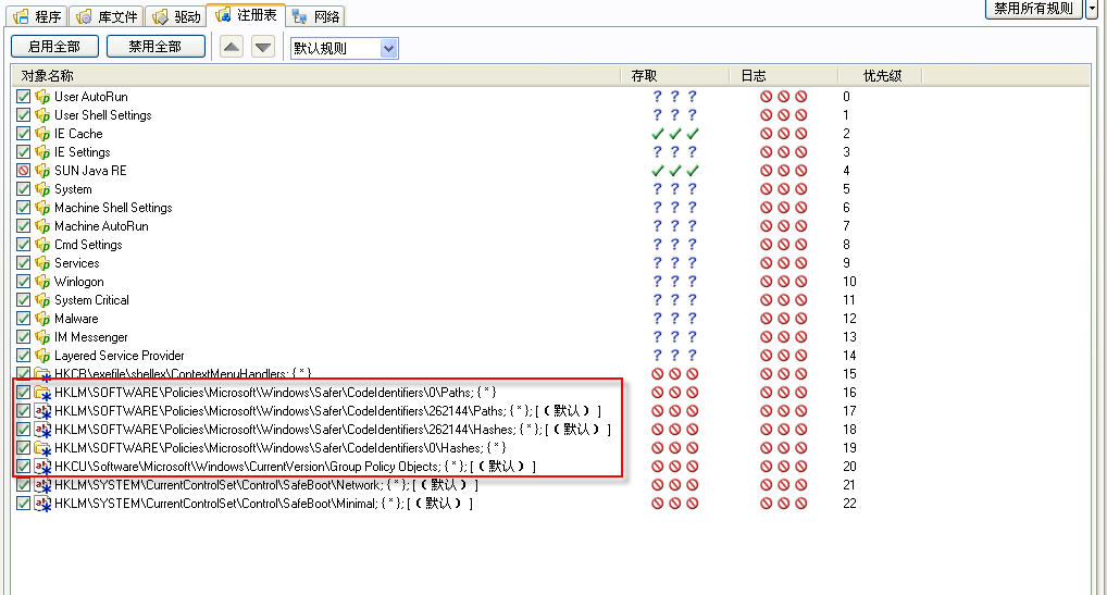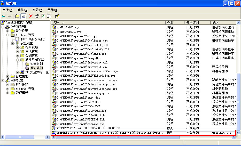 XP专业版。在“软件限制策略中加入这样一条“散列规则”即可。散列规则根据MD5识别程序。