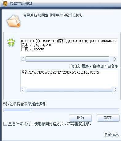 关于瑞星系统加固个QQ医生的问题