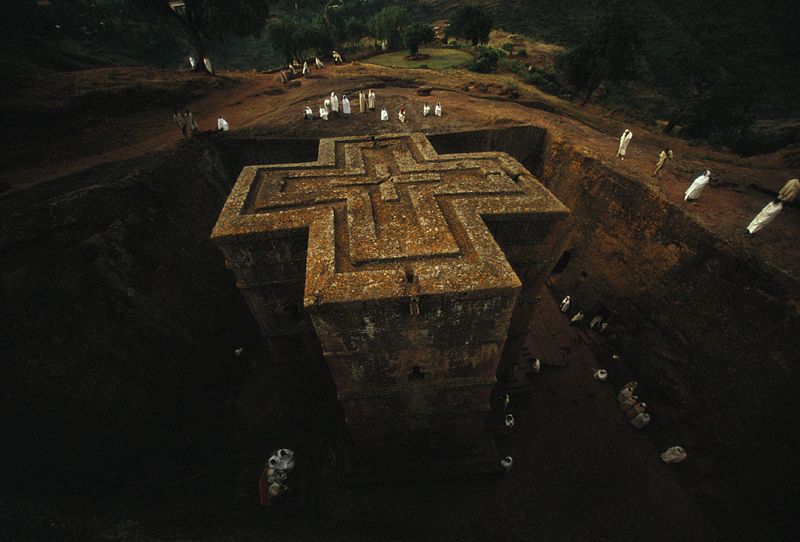 传说12世纪埃塞俄比亚第七代国王拉利贝拉梦中得神谕:“在埃塞俄比亚造一座新的耶路撒冷城,并要求用一整块岩石建造教堂”。于是拉利贝拉按照神谕在埃塞俄比亚北部海拔2600米的岩石高原上,动用2万人工,花了24年的时间凿出了11座岩石教堂,人们将这里称为拉利贝拉。从此,拉利贝拉成为埃塞俄比亚人的圣地。至今,每年1月7日埃塞俄比亚圣诞节,信徒们都将汇集于此。
