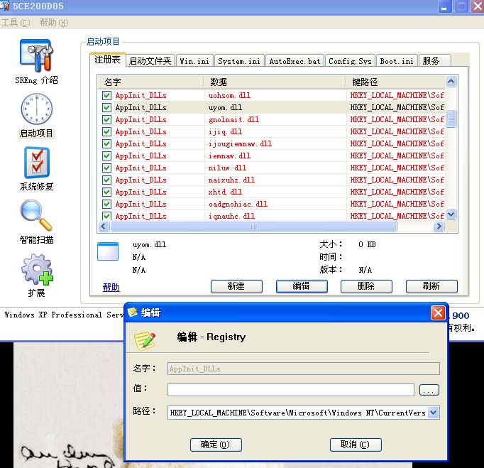 至于SRENG工具的编辑,还是直接到注册表里打开相应注册表项,置空吧。