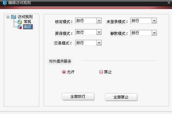 3.删除访问规则中的相关软件,手动添加,并选择“放行”。