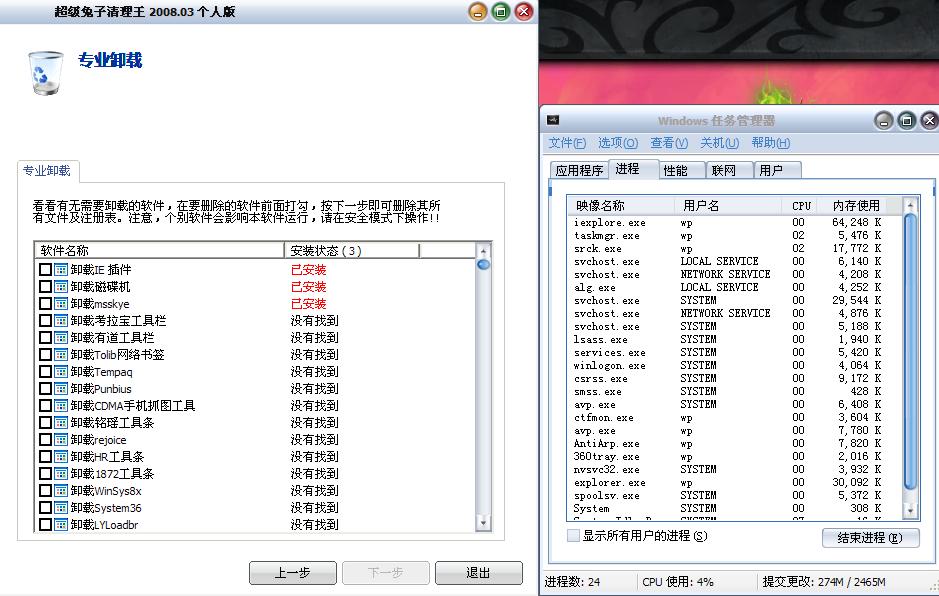 看了帖子,我的电脑用超级兔子检查出了磁盘机和一个msskye这个插件但是用兔子卸载不了,就来瑞星这里找办法,但是看了磁盘机在这里写出的症状我电脑上都没出现,KAV7.0H还正常用着任务管理器和winrar下也没有这里说的那些文件和多余进程,是不是兔子的误报呢?高手请赐教~~~~
