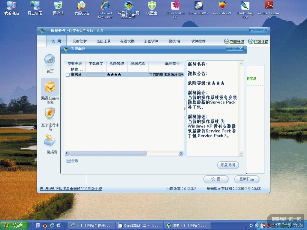卡卡6.0 的实时防护 对 IE 6 不支持。一启动IE 就
