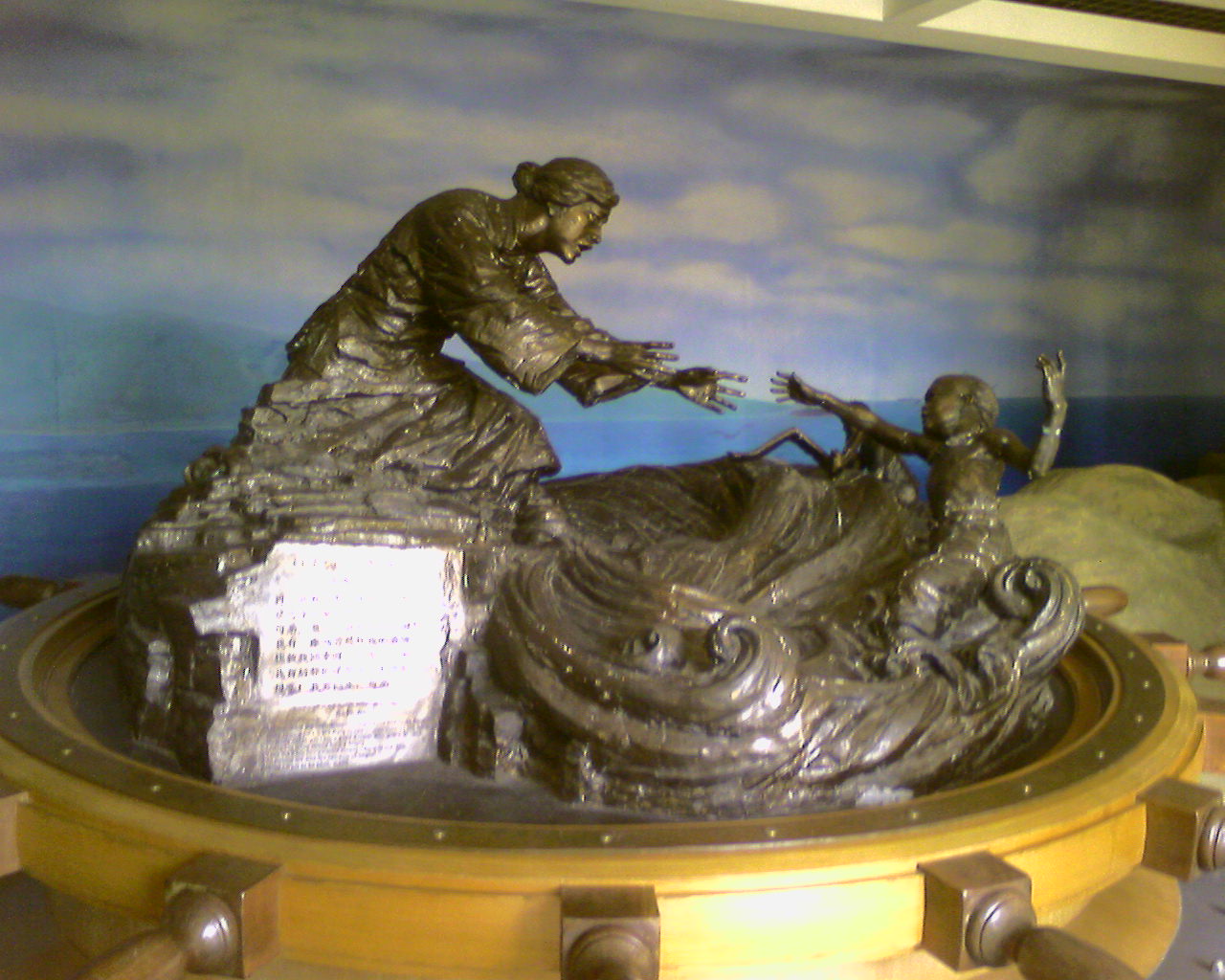 中华海坛:中间的柱子表示定海神针,下面是四条大龙,代表四海龙王,基座外侧还有56条小龙