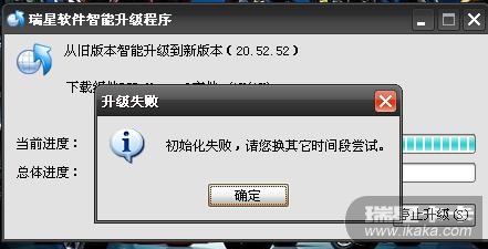 是下载完组件开始更新时提示的,初始化失败,请换其他时间段尝试